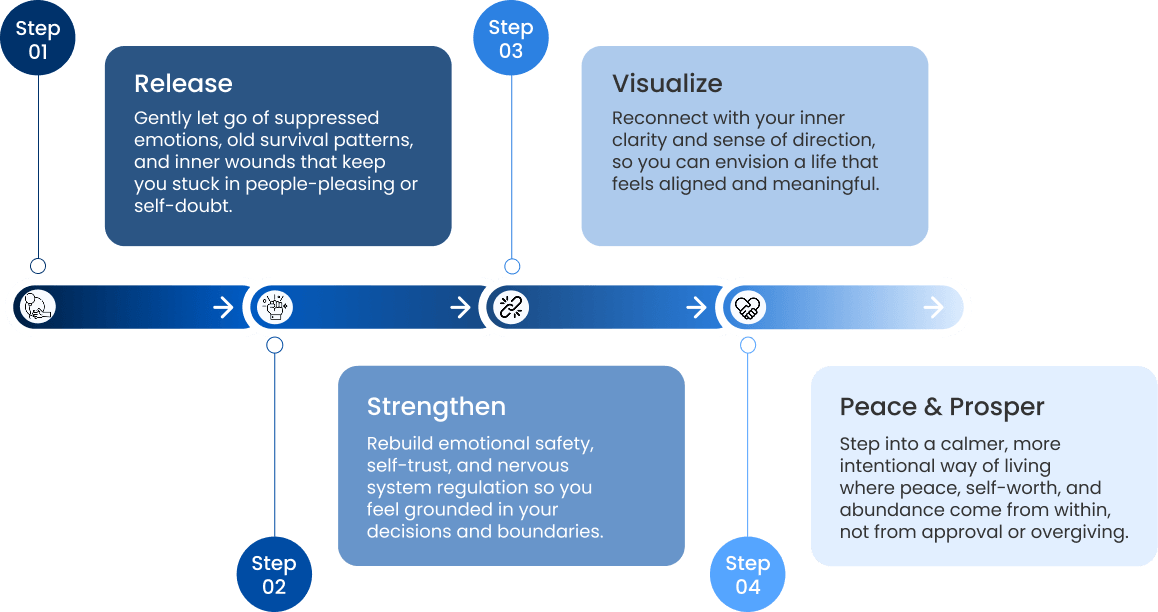 A calm, structured path designed to help you reconnect with yourself without pressure or rushing.